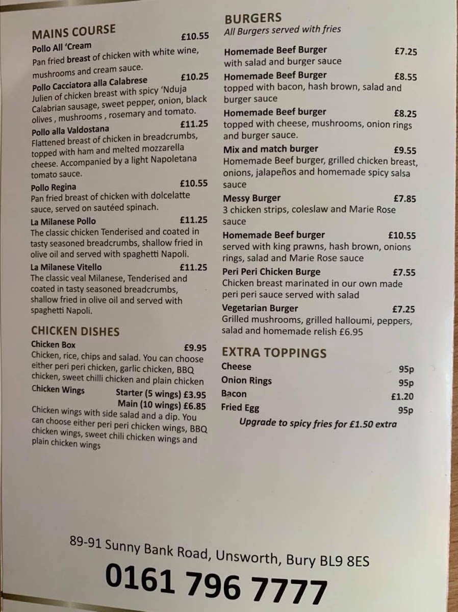 Welcome to De Niro Restaurante Pizzeria, a delightful spot nestled in the heart of Whitefield, Unsworth, Bury. This charming establishment offers a genuine taste of Italy, with an extensive menu featuring a variety of classic Italian dishes and artisanal pizzas crafted to perfection. Located at 89-91 Sunny Bank Rd, Bury BL9 8ES, United Kingdom, De Niro invites you to indulge in a culinary experience that marries authenticity with modern touches.